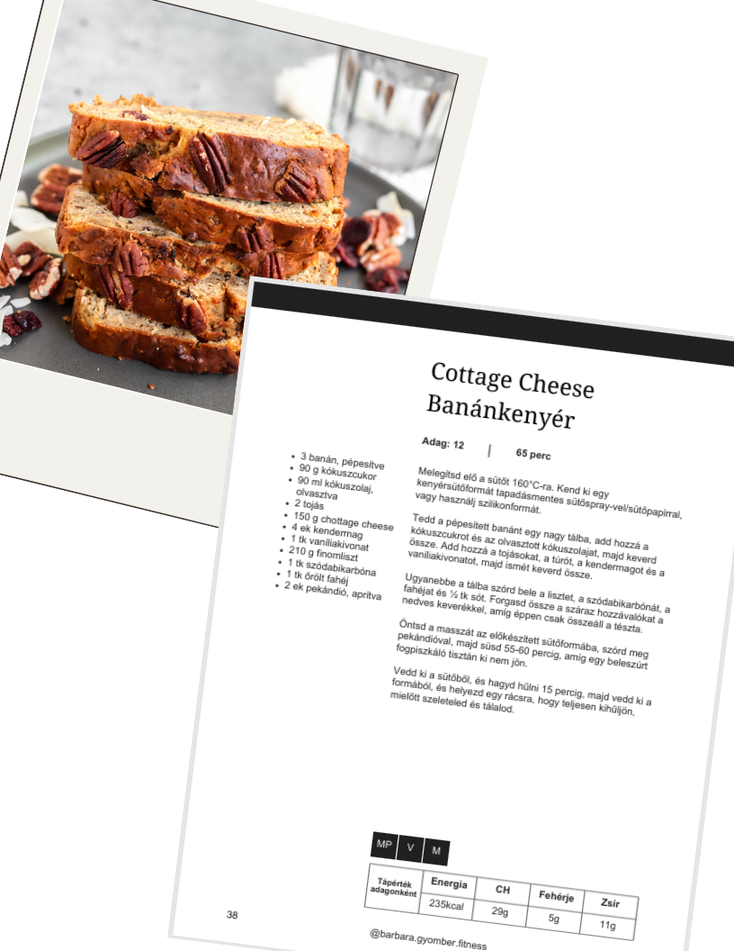 66 receptből álló receptgyűjtemény e-book formájában. Minden recepthez előre kiszámolt makró- és kalória értékek tartoznak, így megkönnyítve a kalóriák számon tartását.